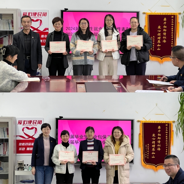 会上,孙正海副院长通报了2024届毕业生就业包保各小组工作完成情况;李成冲副院长宣读了“关于命名表彰2024届毕业生就业包保标兵科室、就业包保先进科室”的决定;党总支书记杨泰、院长李平分别为7个包保科室颁发“就业包保标兵科室”、“就业包保先进科室”荣誉证书。