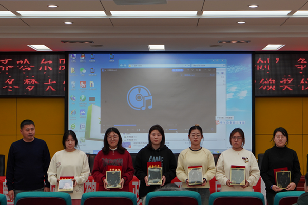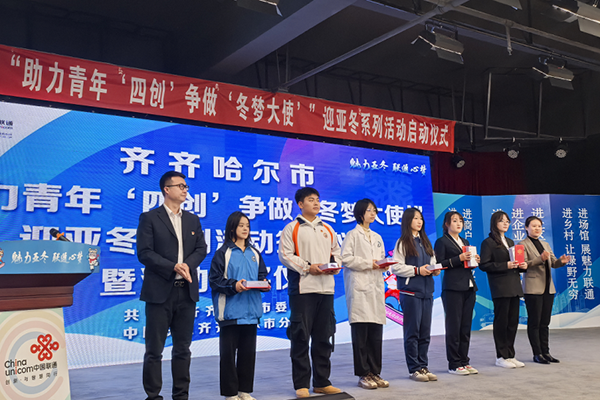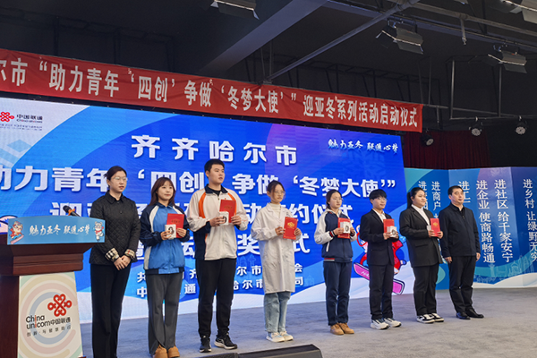 11月27日下午,学院举办了“助力青年‘四创’争做‘冬梦大使’”迎亚冬系列活动校赛颁奖仪式。校赛评选出优秀奖50个。中国联通齐市分公司总监王旭东、客户经理王国军出席颁奖仪式,获奖代表及师生代表百余人参加活动。