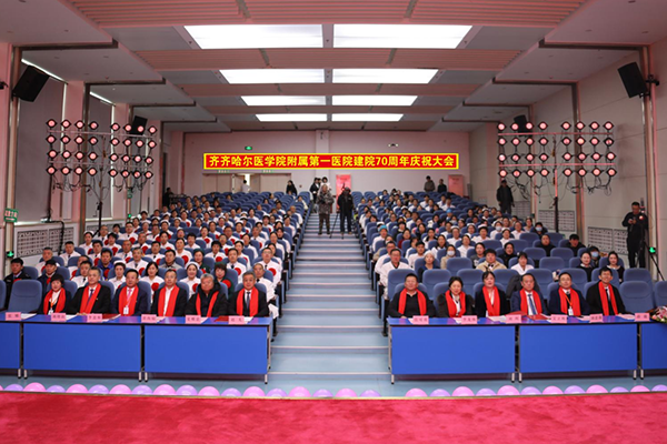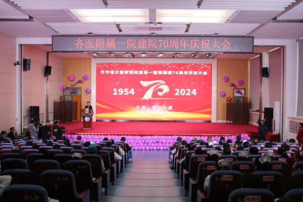 薪火相传七十载,踔厉奋发向未来。11月28日,学院附属第一医院迎来了建院70周年的辉煌时刻。在这个意义非凡的日子里,医院隆重举行了建院70周年庆祝大会,回顾光辉历程,表彰杰出贡献,展望美好未来。学院党委书记、院长赵光,党委副书记张可勇,副院长、党委常委史耀忠,纪委书记、党委常委、省监委驻齐齐哈尔医学院监察专员、二级高级监察官李龙珠,副院长、党委常委郭尚福应邀参加庆祝大会。附属第一医院领导班子、全体员工、部分离退休老同志代表以及在校师生代表齐聚一堂,共同见证这一历史性的时刻。大会由附属第一医院党委书记刘晖主持。