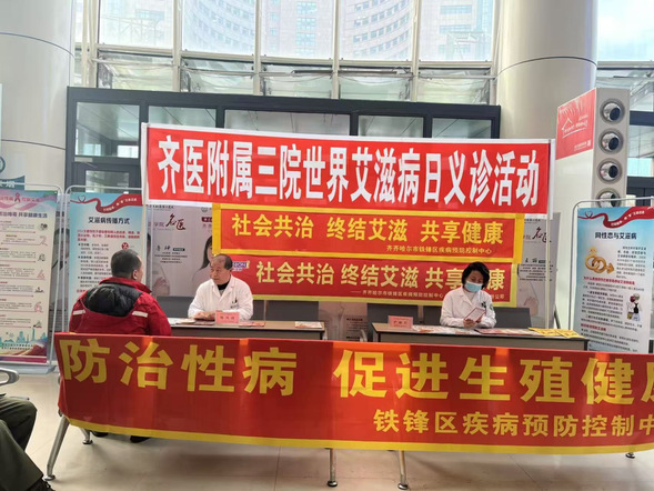 为进一步提高居民对艾滋病的认知,做到艾滋病早发现、早诊断、早治疗。11月29日上午,我院协同市疾控中心性病所、铁锋区疾控中心、妇联等单位进行了艾滋病防控宣传及艾滋病日义诊活动。活动现场,医务人员向前来咨询居民普及了艾滋病的传播途径、症状、预防办法、免费咨询检测等方面内容。