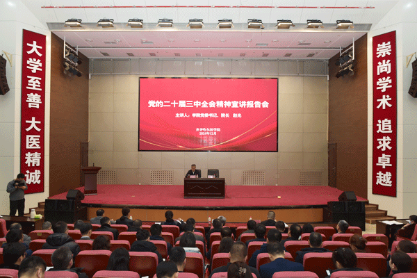 赵光从深入学习领会习近平总书记在党的二十届三中全会上的重要讲话精神,全面理解《决定》提出的进一步全面深化改革重大举措,准确把握省委、学院党委贯彻落实三中全会精神的主要安排三大方面,对党的二十届三中全会精神进行了深入剖析讲解,为全院党员干部上了一堂关于党的创新理论的专题党课。他结合省委十三届六次全会精神和学校实际,从坚持党的全面领导、平稳有序推进临床医学专业“2+3”教学模式改革、持续提升科研能力和科研成果转化水平、持续提升师资队伍整体水平等方面,就如何贯彻落实党的二十届三中全会精神进行了总体谋划和部署。为学院接下来的工作指明了方向,提供了遵循。