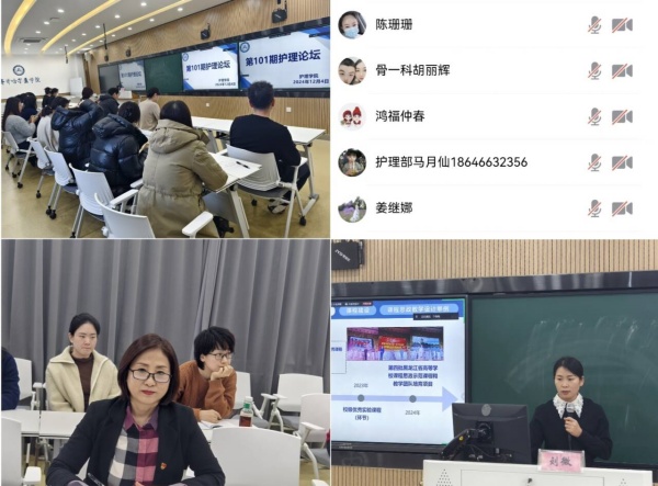 根据《齐齐哈尔医学院课程思政示范课程建设管理办法(试行)》要求,为深入推进课程思政建设,充分发挥示范课程的引领作用,12月4日下午,护理学院组织开展“课程思政”示范课程建设专题讲座暨第101期护理论坛。本次讲座由护理学院副院长马秀梅主持,人文护理学教研室刘微老师进行课程思政示范课程的经验分享,护理学院本部全体教师、其他学院及附属医院兼职教师70余人通过线上线下参加讲座。
