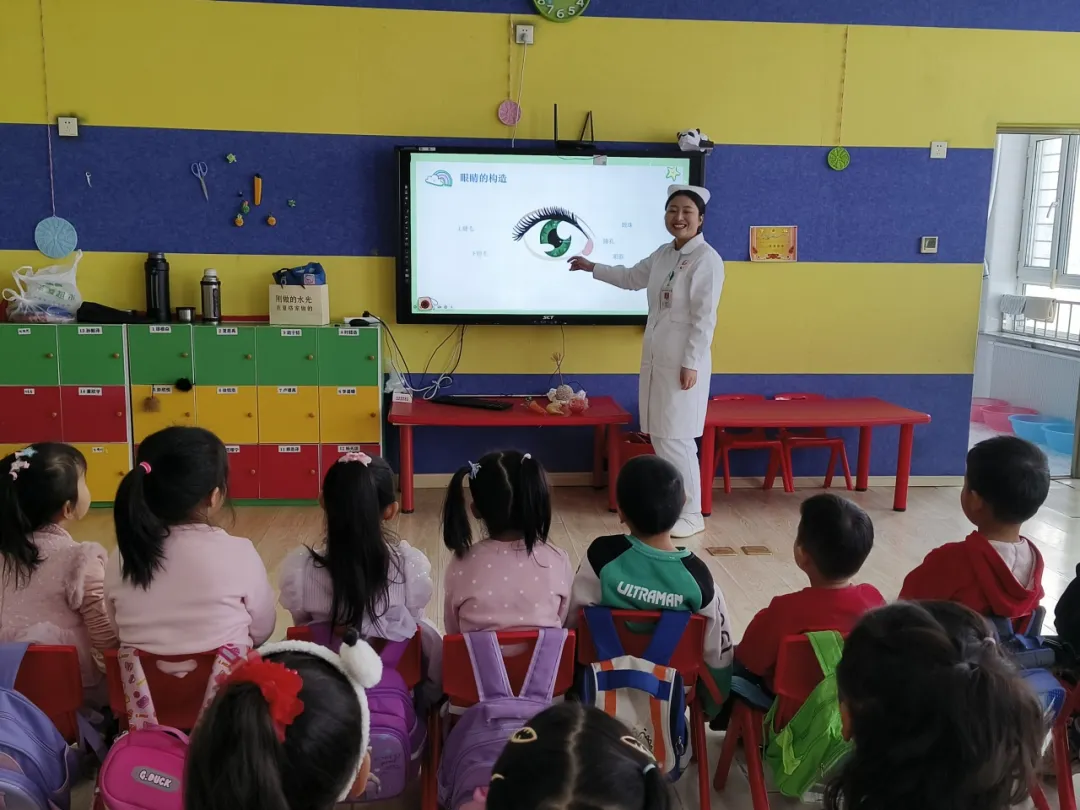 活动现场我院骨外科一病区护士周雨濛,围绕《保护眼睛》主题,通过通俗易懂的语言向孩子们讲解如何爱护眼睛,通过眼保健操视频播放让孩子们掌握了如何科学用眼,让孩子们在愉悦的范围中掌握了健康的知识。