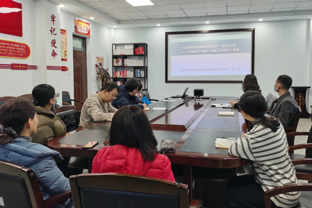 统战成员集中学习了《中国共产党统一战线工作条例》。各位代表结合自身工作岗位畅所欲言,对学院高质量发展取得的成绩表示自豪,并围绕学科发展、课程设置、师资队伍建设、科研能力提升、实习基地建设等方面积极建言献策。大家发言情真意切,建议务实管用,提出了中肯的意见,充分体现了对学院的感情、对事业的热情和对工作的激情。