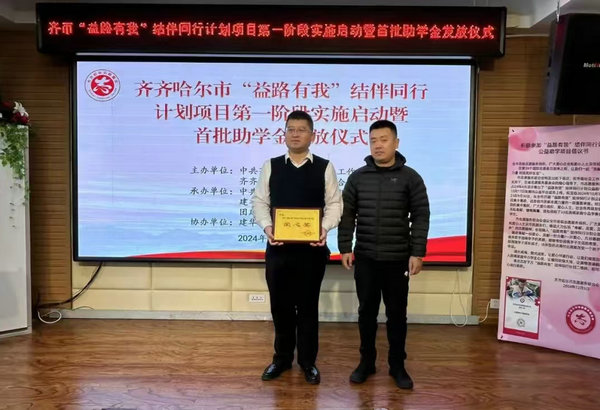 12月5日,由中共齐齐哈尔市委社会工作部、齐齐哈尔市志愿服务联合会主办,中共建华区委社会工作部、建华区教育局、团建华区委承办,建华区民乐小学校协办的齐齐哈尔市“益路有我”结伴同行计划项目第一阶段实施启动暨首批助学金发放仪式在建华区民乐小学校举行。市助艾爱心协会及会长、齐医附属二院肛肠外科主任周扬分别荣获“爱心奖”。