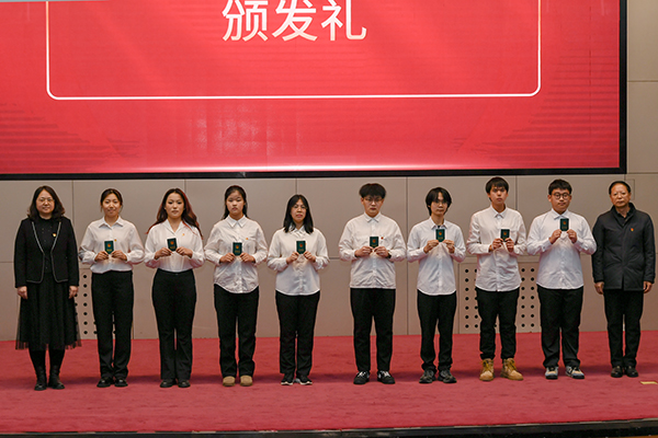 各二级学院书记为新团员颁发团员证