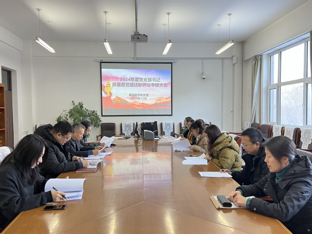 基础医学院党委于2024年12月12日召开2024年度党支部书记述职评议会,会议由党委书记潘洪明主持,学院党委委员、组织员、党支部书记、教师党员代表参加会议。会上,支部书记就贯彻执行党组织决策部署、支部建设与党员管理、特色做法等方面的工作情况和成果进行汇报交流。学院党委班子认真听取报告,充分肯定各党支部书记的履职尽责,为各支部下一步工作开展明确了方向和重点,基础医学院党委书记潘洪明作逐一点评。现场述职结束后,全体与会人员参加了评议。