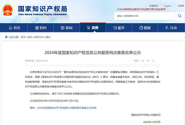 为贯彻落实习近平总书记“要形成便民利民的知识产权公共服务体系,让创新成果更好惠及人民”的重要指示精神,统筹布局全国知识产权信息公共服务网点建设,提升知识产权信息公共服务便利化和可及性,2024年8月,国家知识产权局开展了国家知识产权信息公共服务网点备案工作。在学校领导及相关部门的支持下,图书馆积极申报,2024年12月9日,我院成功入选。