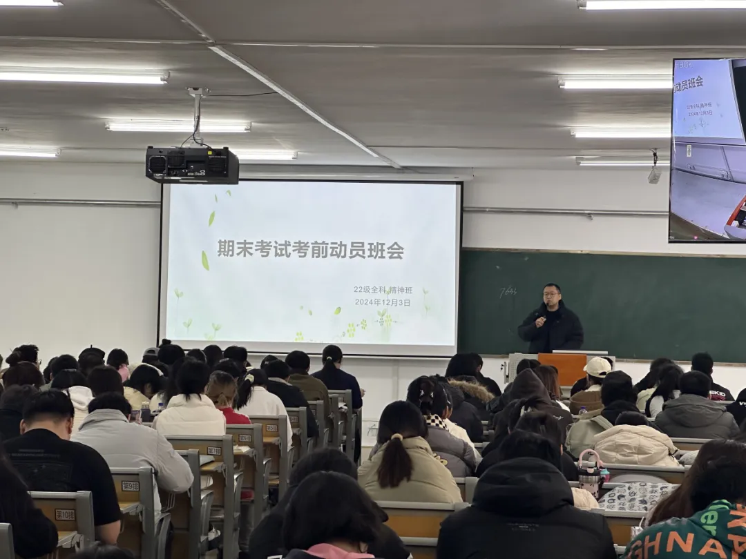 期末考前动员班会的举办,意在唤起学生们的复习热情,提升他们对考试的自信心,帮助他们调整心态,确立复习目标,掌握高效的复习技巧。特别强调了对于考试违纪行为的处理措施,明确指出禁止任何形式的作弊行为,同时严格禁止携带手机、电子手表、智能手表等电子设备进入考场。同时要求学生们保持积极向上的心态,认真备考,力求在期末考试中展现出色的成绩。