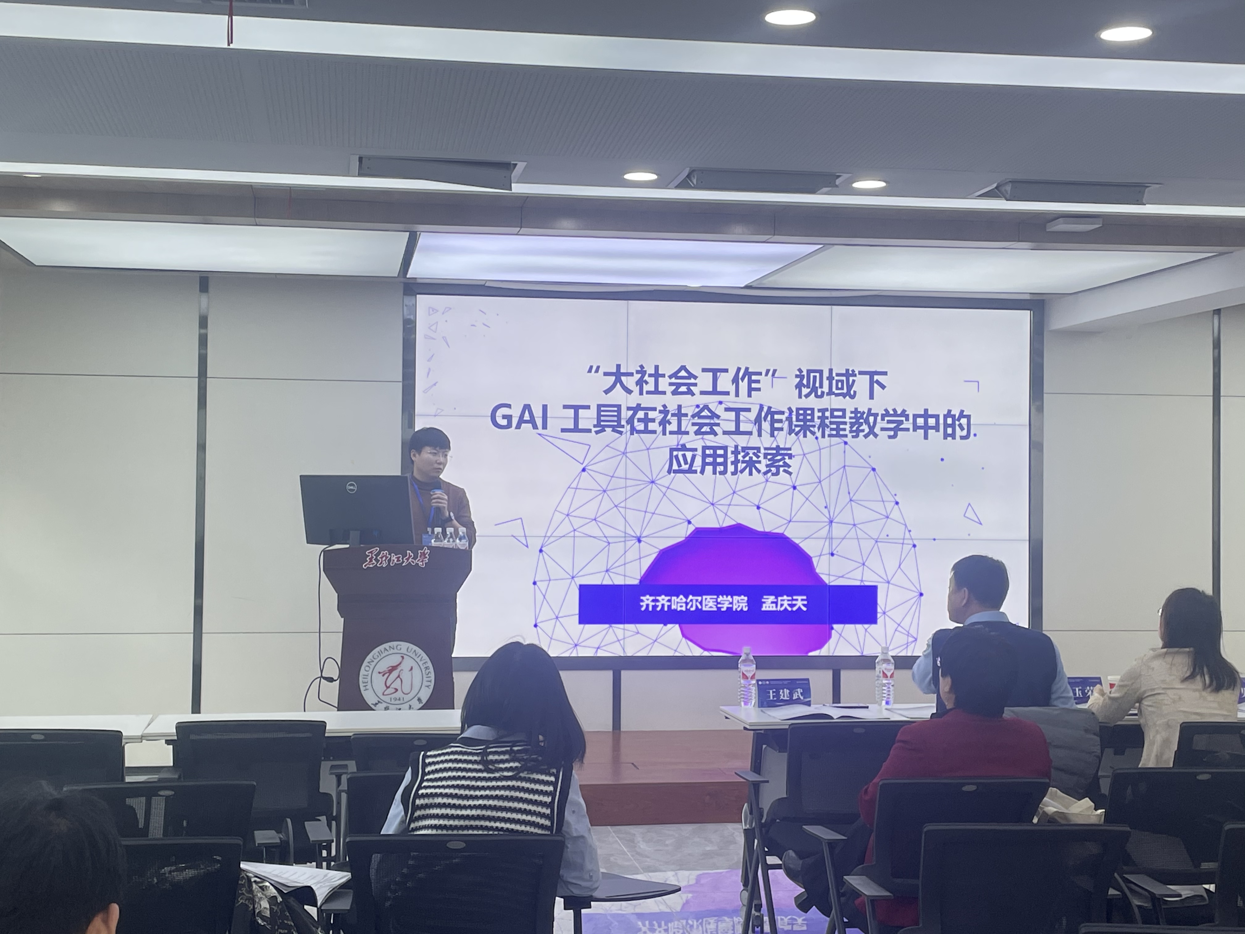 11月28-29日,社会工作教研室王垚老师作为齐齐哈尔市首位高级社工师参加了由中国社会工作学会举办的“儿童社会工作督导人才培养计划”总结交流会,并以“基于互动模式的乡镇社工站项目督导实践探索”为题做了督导案例主题发言。12月15日,社会工作专业团队参加了2024 年度黑龙江省社会学学会、社会工作协会年会暨“东北全面振兴与社会治理创新”学术研讨会,李洪龙、孟庆天二位老师分别以“健康中国背景下精神卫生专业集群建设的探讨”、““大社会工作”视域下 GAI 工具在社会工作课程教学中的应用探索”为题做了专题介绍。