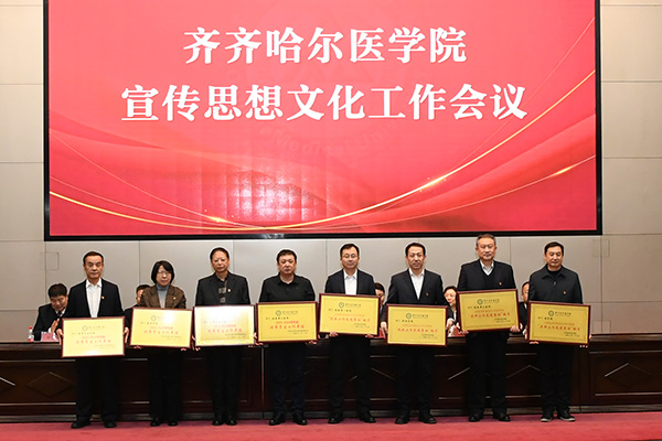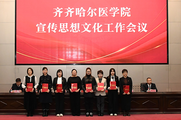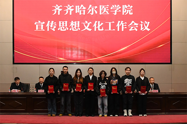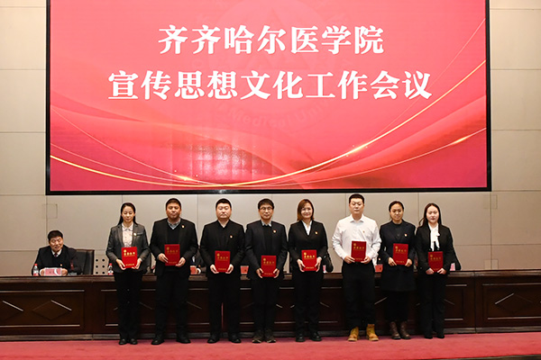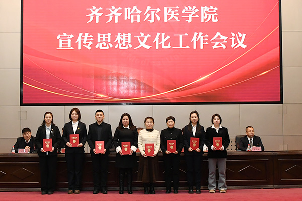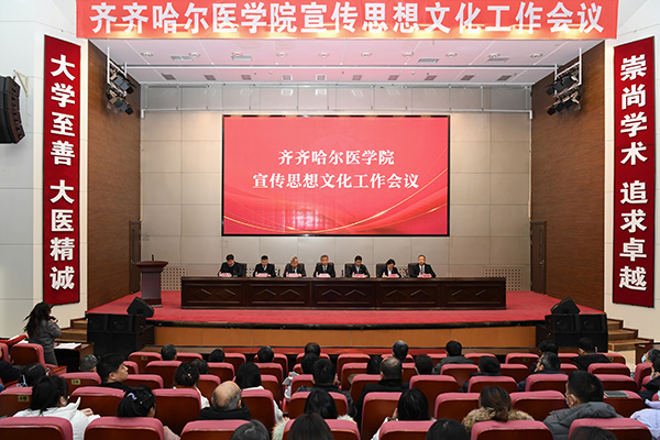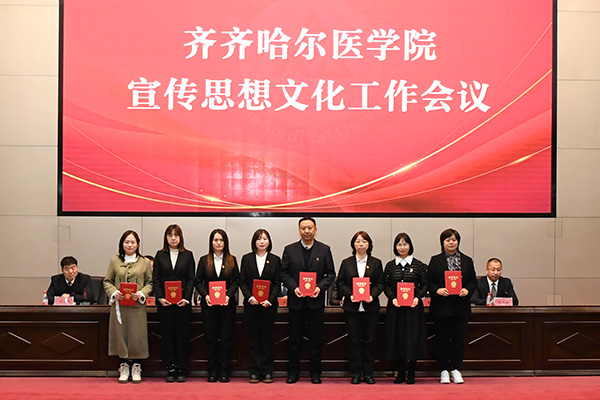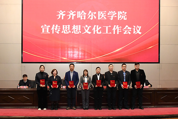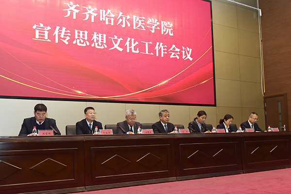 12月19日,齐齐哈尔医学院宣传思想文化工作会议在图书行政楼二楼多功能厅召开。学院党委书记、院长赵光出席会议并讲话,学院党委副书记迟沫涵作宣传思想文化工作报告,学院副院长史耀忠、纪委书记李龙珠、副院长于海涛、郭尚福出席会议,会议由学院党委常委、宣传统战部部长张宝林主持。各单位、部门党政负责人,全体辅导员、通讯员,宣传统战部、学生工作部、招生就业处、团委、马克思主义学院全体人员和受表彰人员参加会议。