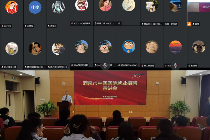会后,在学院党总支副书记刘兴来的引领下,用人单位分别到我院实习基地——齐齐哈尔市精神卫生中心、黑龙江省第三医院开展了线上线下相互结合的招聘宣讲。
