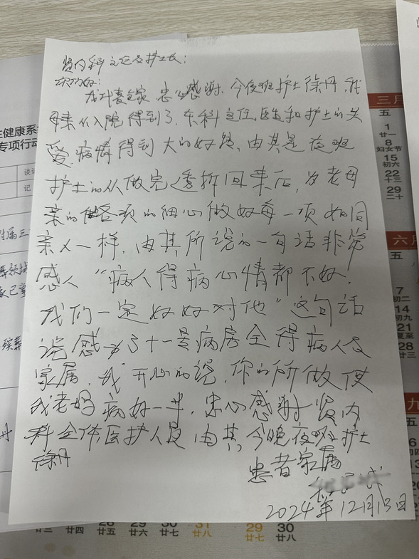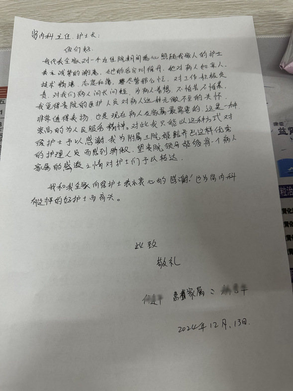 徐丹收到患者的表扬信