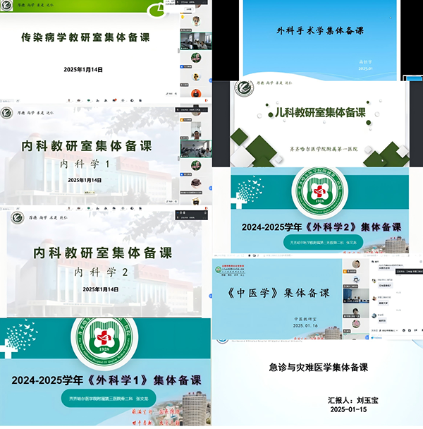 为进一步提升临床教育教学质量,强化教学效果,深化“2+3”教学模式改革,确保各临床教学基地教学效果“同质、同效”,1月14-16日,临床教学中心组织附属第一、二、三、五、六、十、十一医院、河北燕达医院、秦皇岛妇幼保健院、哈尔滨市第一医院等10所临床教学基地的教学管理人员、一线临床教师共346人,对2024-2025学年第二学期开设的《内科学1》《内科学2》《外科学1》《外科学2》《儿科学》《急诊与灾难医学》《传染病学》《外科手术学》《中医学》等9门临床课程,开展了线上线下同步集体备课活动。