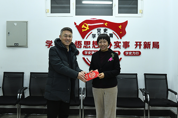 1月22日,在新春佳节即将到来之际,齐齐哈尔市委组织部常务副部长李英江、市委人才办副主任许晶哲一行4人专程来到学院,走访慰问学院省D类高层次人才代表韩翠艳教授,代表省委组织部、齐齐哈尔市委致以诚挚的节日问候。学院党委副书记张可勇,党委常委、组织部长肖锋刚参加慰问活动。