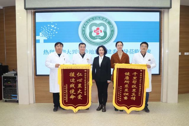 医院积极响应贯彻落实由省委组织部牵头、省卫健委组织实施的“组团式”援边行动,高质量持续推进“组团式”援边工作,2024年度共选派25名骨干医生支援漠河市人民医院、大兴安岭地区人民医院,以“身在最北方,心向党中央”的政治忠诚,脚踏实地、倾心帮扶,把他乡当故乡,用心、用情、用爱积极开展医疗帮扶工作,获得了当地政府、受援医院和兴安人民的认可。大兴安岭地区卫生健康委员会、漠河市卫生健康局、大兴安岭地区人民医院领导专程为我院送来3面锦旗。医院在黑龙江省开创了一家单位同时帮扶两家医院的先河,援边工作成效被《黑龙江卫生健康》专题报道3次。