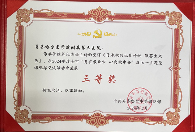 医院医生荣获齐齐哈尔市“身在最北方·心向党中央”庆七一主题党课观摩交流活动三等奖