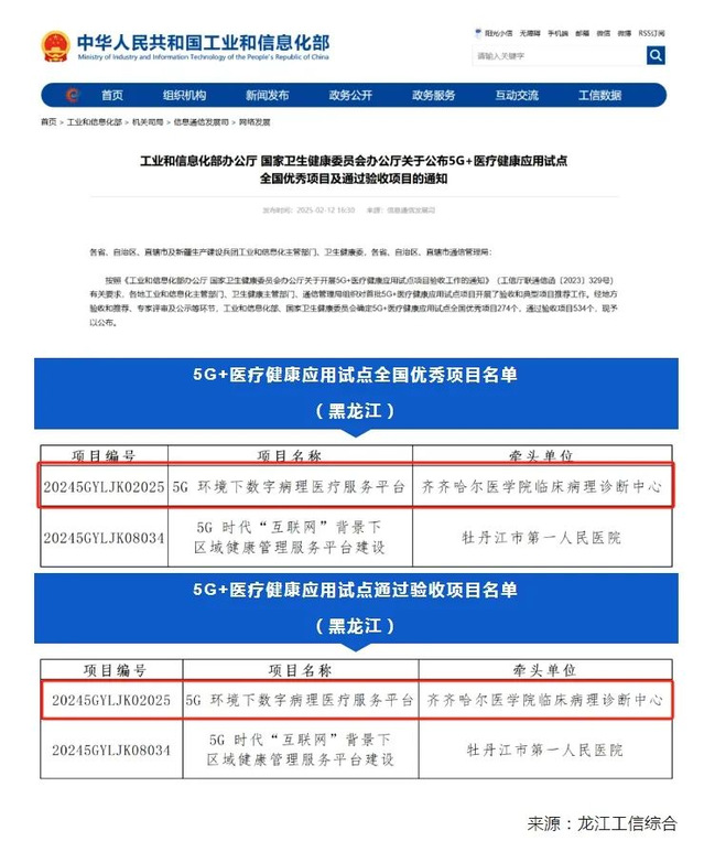 日前,工业和信息化部办公厅、国家卫生健康委员会联合发布了“5G+医疗健康应用试点全国优秀项目”及“通过验收项目”名单,齐齐哈尔医学院临床病理诊断中心牵头的《5G环境下数字病理医疗服务平台》项目成功通过验收,并获评全国优秀项目。这一荣誉标志着齐医临床病理诊断中心在数字病理领域取得了显著成就,成为全国范围内的标杆案例。