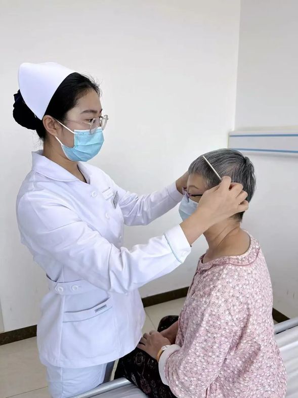 在护理工作中,护士们把“微笑服务”融入每个细节,耐心解答患者的疑问,尽量避免使用专业化术语,以通俗易懂的语言进行沟通,确保患者能够充分理解诊疗过程和注意事项,让患者感受到被关心和尊重。尤其是对于老年人,在术后常常面临肢体活动受限的问题,无法自理,即使是一些小事都会感到无能为力。对此,护士们总是想患者之所想,帮患者之所需,在看到患者王阿姨因无法抬手梳头而犯难时,主动为她梳洗。梳头,不仅是简单的清洁,更是一种心灵的慰藉,拉进了医患之间的距离,体现了医疗护理服务中的人文关怀。在胸心外二科病房,类似这样的暖心瞬间还有很多,通过这些服务的细节,全体医护人员用实际行动传递着爱心和温暖。