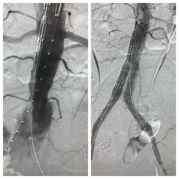 近日,我院血管外科成功“拆除”2025年第一枚“炸弹”。患者唐大爷由于尿潴留来我院泌尿外科就诊,然而这枚埋藏在腹部多年的“不定时炸弹”成了解决排尿不畅的最大阻碍。血管外科李喜春主任团队应邀会诊,向患者及家属详细分析病情,患者于次日转入血管外科完善相关检查。由于病情相对复杂,病变累及双侧髂动脉,经过对动脉CTA各部位精确测量制定手术方案,心内科、胸心外科、呼吸与危重症医学科和麻醉科等各位专家进行多学科会诊评估手术风险,3日后通过杂交手术的形式历时两小时完成手术,患者于术后第二日返回病房,各项生命体征平稳。