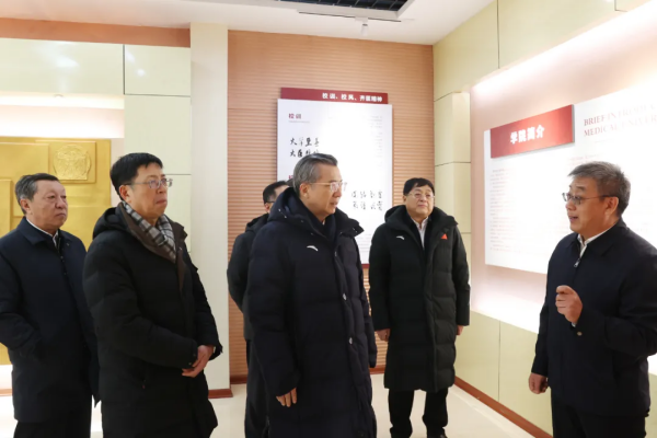 随后,王永康一行前往齐齐哈尔医学院,参观校史馆、医药科学研究院等,深入了解学校历史、高水平办学特色、药品研发等情况,就人才培养、医疗科研成果转化等开展调研,并与赵光、王修远等校领导和教授进行深入交流,走访看望部分省、市人大代表。