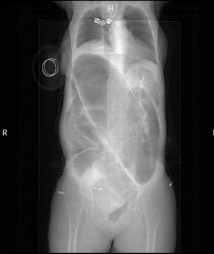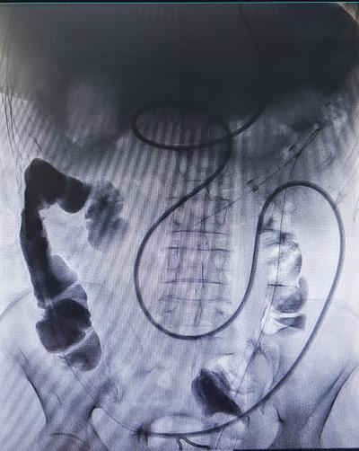 入院后完善相关检查,经介入团队留置肠梗阻导管(经鼻型、经肛型),肠梗阻导管由硅橡胶制成,富于柔韧性,有效吸引肠道内容物,充分减轻肠道压力、肠道准备,为患者能够行全腹腔镜全结肠切除提供了重要的先决条件。我院普外三科邵学谦主任及其团队在手术室团队的协助下完成了全腹腔镜下全结肠切除术。术后患者病情恢复良好,便秘症状得到了完全缓解,生活质量得到了显著提高。