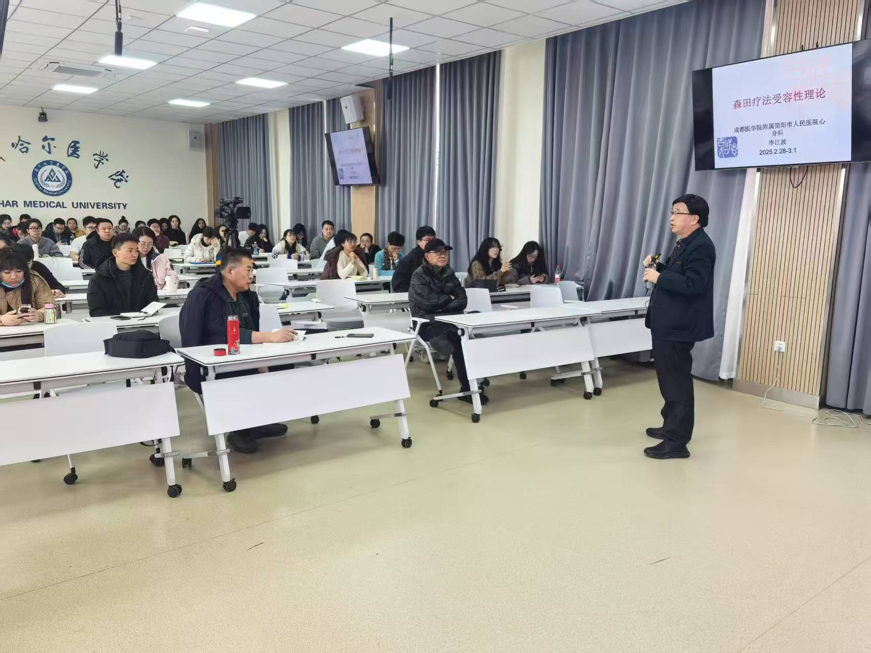 为促进精神卫生领域学术交流,提升我院师生的心理治疗技术水平,2月28日至3月1日,精神卫生学院邀请成都医学院附属简阳医院李江波教授来院举办了森田疗法专题培训,精神卫生学院师生、附属四院精神科医生和市域内精神卫生工作者、心理工作者积极参加,经过两天的紧张学习,培训了取得圆满成功。