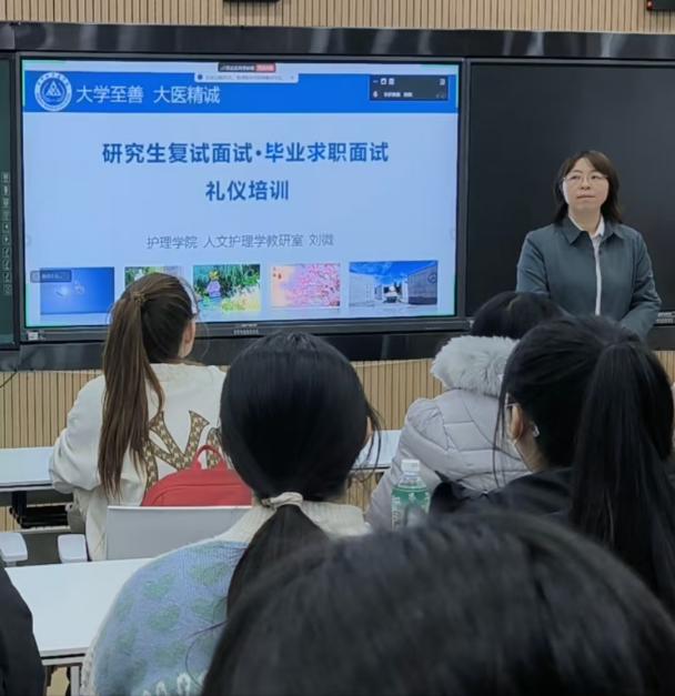 为助力学生从容应对求职面试和考研复试面试,3月4日,护理学院在主楼北区509教室举办面试礼仪专题培训。本次培训由护理学院学工办主任王坤主持,特邀护理学院人文护理学教研室刘微老师主讲,护理学院及其他二级学院学生100余人通过线上线下参加培训。