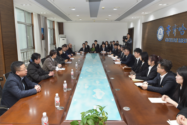 3月12日,全国人大代表、学院附属第一医院护理部副主任兼神经内科四病区护士长于洋结束十四届全国人大三次会议各项议程返回家乡,第一时间走进师生中,传达两会精神,鼓励广大医学生积极参与到国家建设中来,发出齐医青年学生的好声音。学院党委副书记迟沫涵,党委常委、宣传统战部部长张宝林,附属第一医院党委书记刘晖、院长李忠原,学院团委书记刘柏人等与师生代表一起,与于洋进行了座谈交流。