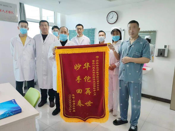 半年后,患者再次找到兰树伟完成回肠造口还纳术,完成治疗过程的最后一环。经综合评估,病人吻合口愈合良好,无肿瘤复发及转移,完善了术前准备后行回肠造口还纳术。造口还纳术后,患者在医护人员精心护理下饮食正常,肠道功能恢复并能正常排便。患者及家属对兰树伟及其团队精湛的医术和高尚的医德感激不尽,患者激动地说:“是兰医生给了我第二次生命和以后活下去的尊严。”