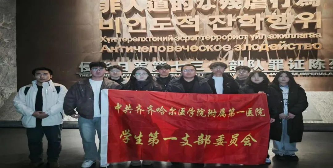 为深入学习贯彻党的二十大精神,隆重纪念中国人民抗日战争胜利80周年,厚植爱国主义情怀,强化支部党员的历史责任感和使命感。3月8日上午,齐医附属一院学生第一党支部组织支部党员前往侵华日军第七三—部队罪证陈列馆开展主题党日活动。通过实地学习,使支部党员共同回顾那段惨痛的历史,缅怀先烈英魂,引导青年学生觉员勿忘国耻,牢记使命,在历史反思中汲取奋进力量。