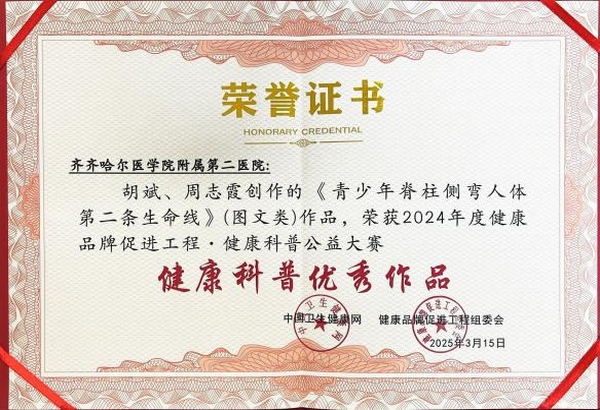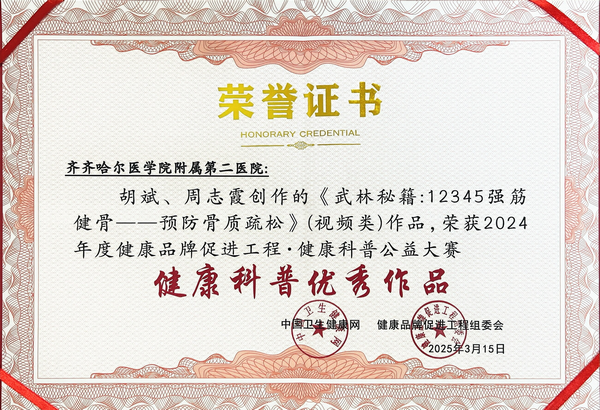 此次多项荣誉的获得,既是对齐医附属二院健康科普工作与学科建设成果的高度认可,也激励着医院继续发挥专业优势,创作更多优质健康科普内容,推动医疗服务高质量发展,为守护群众健康、传播医学知识持续贡献力量。未来,医院将以荣誉为动力,深化健康科普与学科建设融合,助力健康中国行动迈上新台阶。(供稿:康复医学科 周志霞 责编:宣传科 吕唱 一审:胡斌 二审:高秀文 三审:刘波)