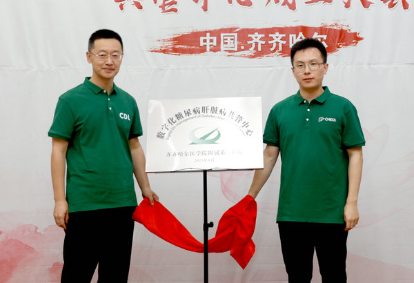 齐医附属二院院长武立刚与祁小龙教授共同为市数字化糖尿病肝脏病共管中心揭牌