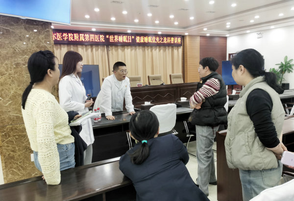 3月21日是第25个世界睡眠日,齐医附属四院精神第二党支部、开放病区、男一病区的医护人员,走进铁锋区光荣街道曙光社区党群服务中心、齐铁房产段、齐齐哈尔电信公司,开展以“睡眠健康,优先之选”为主题的系列公益活动,专家们通过睡眠知识讲座及专家义诊,为广大有睡眠困扰的朋友解决问题。