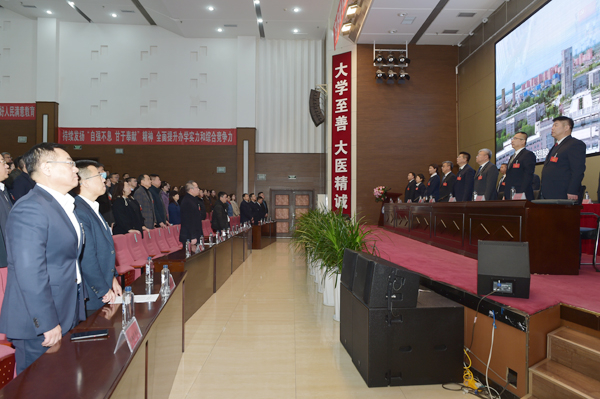 报告明确,2025年,学院将坚持以习近平新时代中国特色社会主义思想为指导,全面贯彻落实党的二十大及二十届二中、三中全会精神、全国和全省教育大会精神,要坚持以政治建设为统领,全面加强党的建设,提升引领发展能力;要坚持以岗位胜任力为导向,全面深化教学改革,提升人才培养质量;要坚持以创建医科大学目标为指引,全面加强学科建设,提升科研能力和成果转化水平;要坚持以深化学术型医院建设为抓手,全面加强医院内涵建设,提升医教研一体化发展水平;要坚持以高素质专业化创新型为方向,全面深化人事制度改革,提升师资队伍整体实力;要坚持以立德树人为根本任务,全面强化招生就业,提升学生工作科学化水平;要坚持以提质增效为目标,全面谋篇布局,提升现代大学治理能力和服务保障能力。