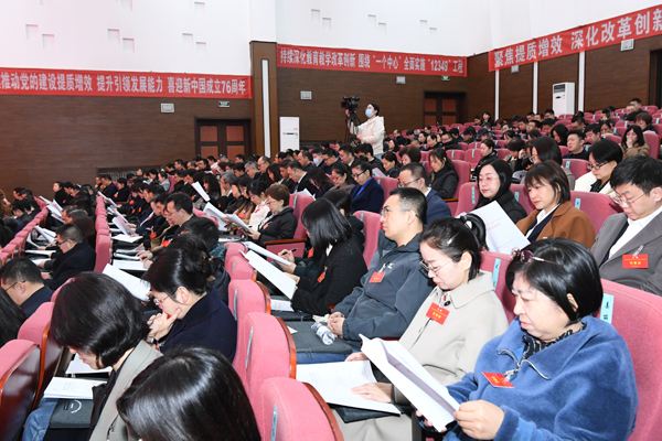 春雪荡春潮,齐医逐梦骄。3月28日,齐齐哈尔医学院八届二次教职工代表大会在图书行政楼二楼多功能厅胜利召开。本次大会共有277名正式代表、4名特邀代表参加会议。学院党委书记、院长赵光在第一次全体代表大会上作《聚焦提质增效 深化改革创新 绘就学院高质量内涵式发展新篇章》工作报告,并在第二次全体代表大会上讲话。