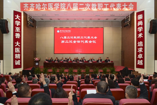 在第二次全体代表大会上,代表们通过举手表决的方式,通过了《学院2024年财务预算执行情况和2025年财务预算报告》《齐齐哈尔医学院八届一次教代会提案工作报告》。大会对八届一次教代会优秀提案和提案承办落实先进单位进行了表彰。