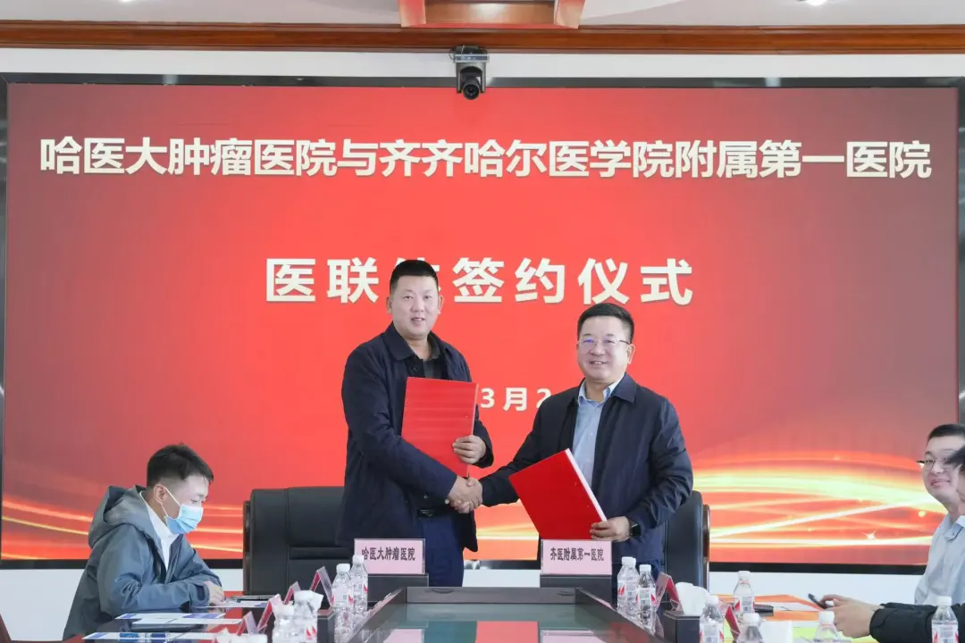 为推进优质医疗资源下沉,构建区域性肿瘤防治体系,3月24日,齐齐哈尔医学院附属第一医院与哈尔滨医科大学附属第三(肿瘤)医院正式签署医联体合作协议。由齐医附属一院院长、党委副书记李忠原率领的专家团队,包括神经外科教授副院长刘增良、普外科主任许景伟、肿瘤科副主任付荣、胸心外科副主任王天舒及医疗合作办公室主任刘洋等一行6人赴哈开展合作洽谈与学术交流,标志着两院肿瘤诊疗协作迈入新阶段。