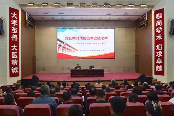专家辅导拓视野。学院党委邀请齐齐哈尔市社科联副主席、一级调研员何莉教授来院,以《党在新时代的徙木立信之举——深入贯彻中央八项规定精神学习教育》为题,为学院党委班子和广大党员干部进行专题辅导,帮助党员干部深刻理解中央八项规定的重要意义、主要内容及落实情况、实践要求等,进一步拓宽了党员干部视野,坚定了大家持续加固中央八项规定堤坝,以优良作风保障高质量发展的信心和决心。