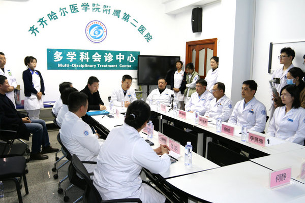 4月2日下午,齐医附属二院在门诊五楼多学科会诊中心开展了学院首例肿瘤外科院际MDT(多学科协作会诊)。学院医院管理处副处长韩俊岩参加会议。医院院长、党委副书记武立刚讲话,副院长刘波、医务部主任于海明参加会议,肿瘤外科一病区主任郑春雷主持会议。来自附属第一、二、三医院肿瘤外科、影像中心、核医学科、放疗科、麻醉科、普外科、内分泌科等15个专业的18位专家,打破学科壁垒,整合多家医院优质资源,为患者提供“一站式”诊疗服务,制定最佳诊疗方案。