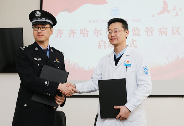 武立刚院长代表齐医附属二院与监狱方签署《医疗联合体协议书》,标志着齐齐哈尔监狱监管病区正式成立,双方医疗合作迈入制度化、常态化阶段。