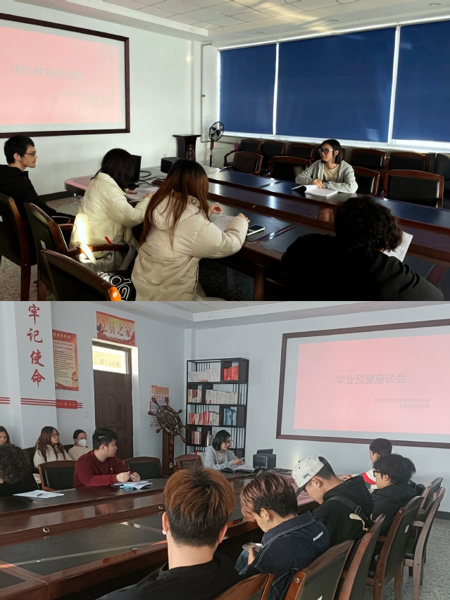 为加强学风建设,做好学业困难学生的教育管理和精准帮扶,增强学生的考试纪律意识,2025年4月3日下午,医学技术学院学生工作办公室在部系楼C区501会议室组织召开学业预警与违纪学生教育座谈会。45名学业预警学生和6名违纪学生参加,会议由辅导员夏玉婷老师主持。
