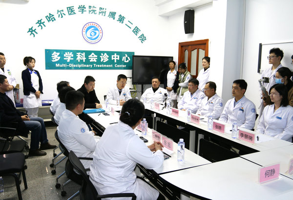 4月2日下午,齐医附属二院在门诊五楼多学科会诊中心开展首例肿瘤外科院际MDT(多学科协作会诊),齐医学院医院管理处副处长韩俊岩出席会议并致辞,院长、党委副书记武立刚讲话,副院长刘波、医务部主任于海明参加会议,肿瘤外科一病区主任郑春雷主持会议,来自附属第一、第二、第三医院肿瘤外科、影像中心、核医学科、放疗科、麻醉科、普外科、内分泌科等15个专业18位专家,打破学科壁垒,整合多家医院优质资源,为患者提供“一站式”诊疗服务,制定最佳诊疗方案。