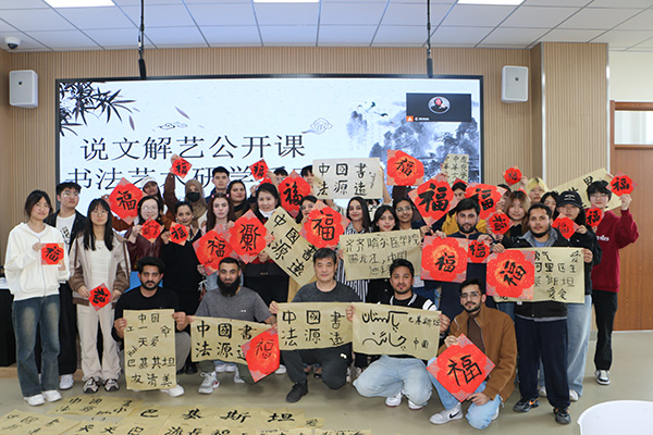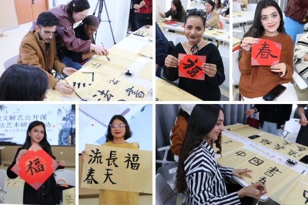 活动现场洋溢着深厚的文化气息,教师和留学生们一起探讨了中国传统文化的奥秘,分享了书法艺术的精粹。这次活动不仅促进了中外学生之间的文化互动,还帮助了留学生更深入地认识中国传统文化,推动了中外文化的交流与互鉴,丰富了校园文化生活。