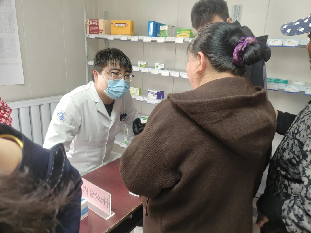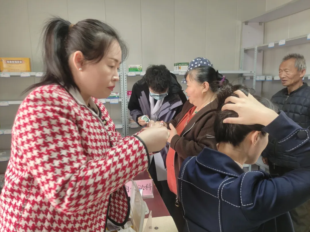 上午9时,义诊团队抵达白山镇七村村委会,闻讯赶来的村民早已有序排队等候。专家们结合农村地区常见病、多发病特点,提供针对性健康服务。心内科二病区常明主任为高血压、冠心病患者提供用药指导,普及心血管疾病预防知识;神经内科三病区齐宝奎主任为群众筛查脑卒中风险,讲解“中风120”识别要点;全科医疗科漆毅主任为患者普及呼吸系统相关知识,提供综合健康和用药咨询;内分泌科一病区李志鹏医生免费为百姓检测血糖,指导糖尿病患者调整胰岛素或口服药的用量及饮食管理;康复医学科姚檬娜医生针对颈肩、腰腿疼痛疾病,为村民针灸治疗,演示居家康复训练方法。