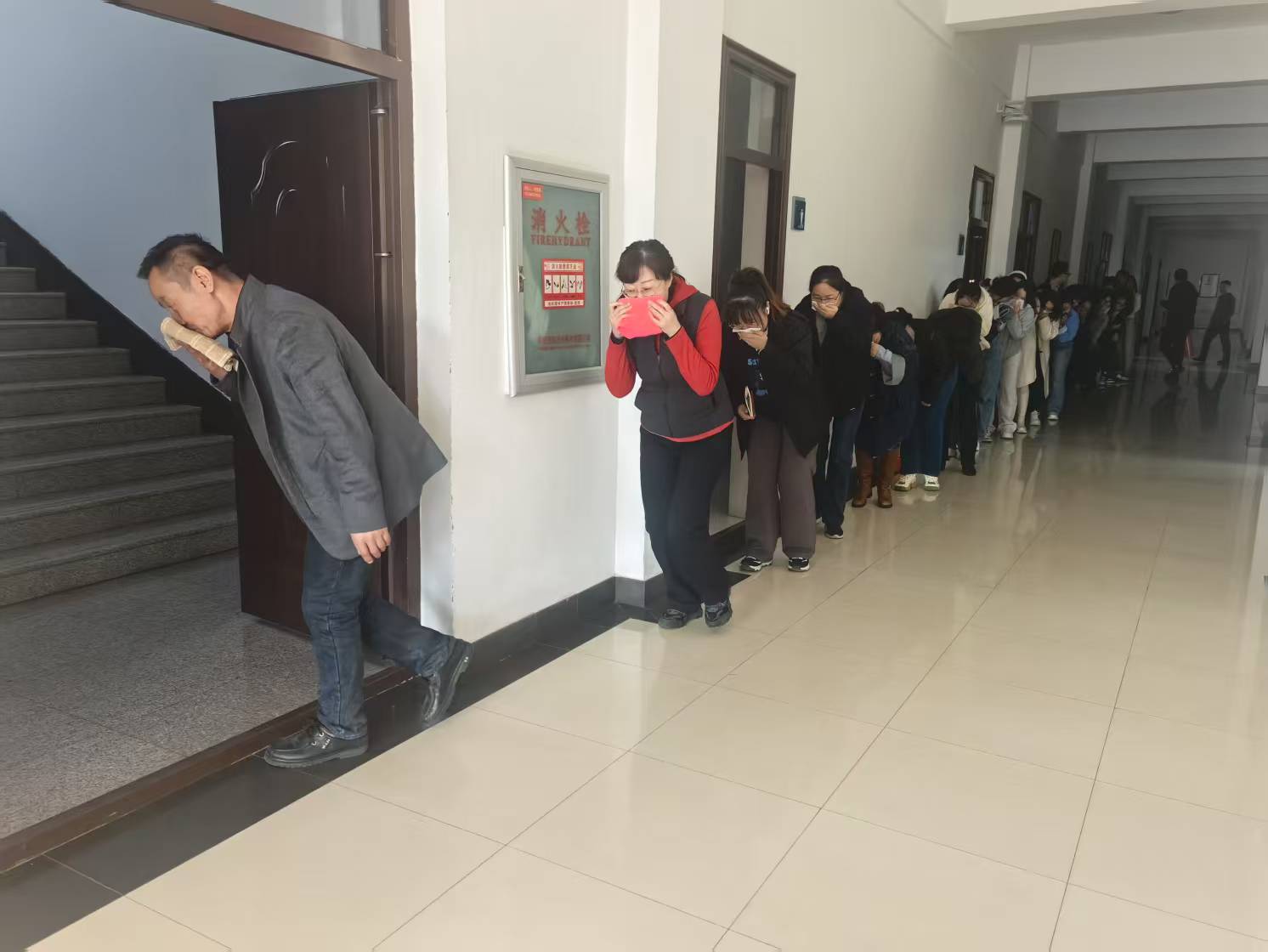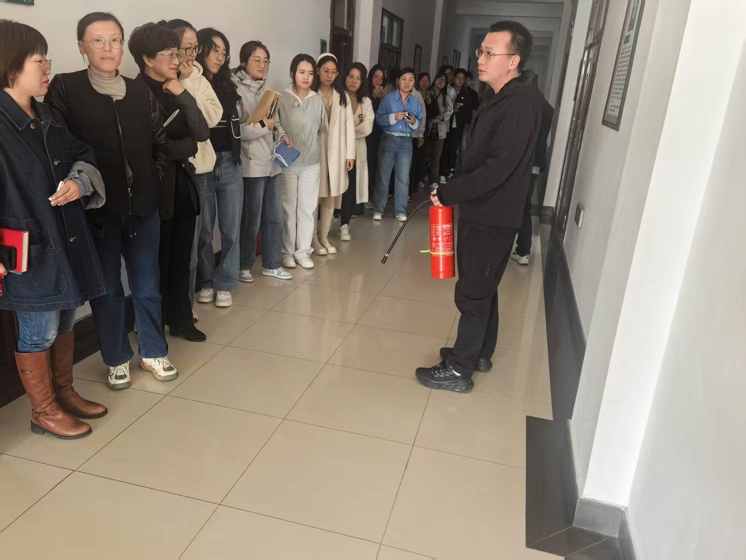会后,李成冲副院长对全院教师进行了灭火器使用培训,培训结束后开展了消防逃生演练。