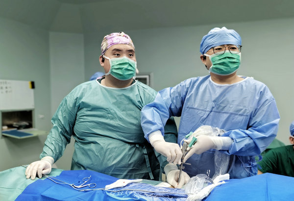 骨外科三病区副主任刘艳楠等在行脊柱内镜微创手术