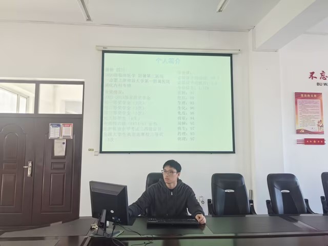 为助力学生提升学习能力与方法,营造互助学习氛围,2025 年 4 月 16 日,基础医学院在南区350会议室开展了 2025年“逐梦‘研’途,共赴未来”—— 考研经验分享系列创新创业大讲堂。本次活动由学生工作办公室刘宏伟、孙石磊老师全程参与指导,邀请临床医学专业2020级考研上岸优秀学生代表胡天晓、唐彬两名同学作为主讲人。