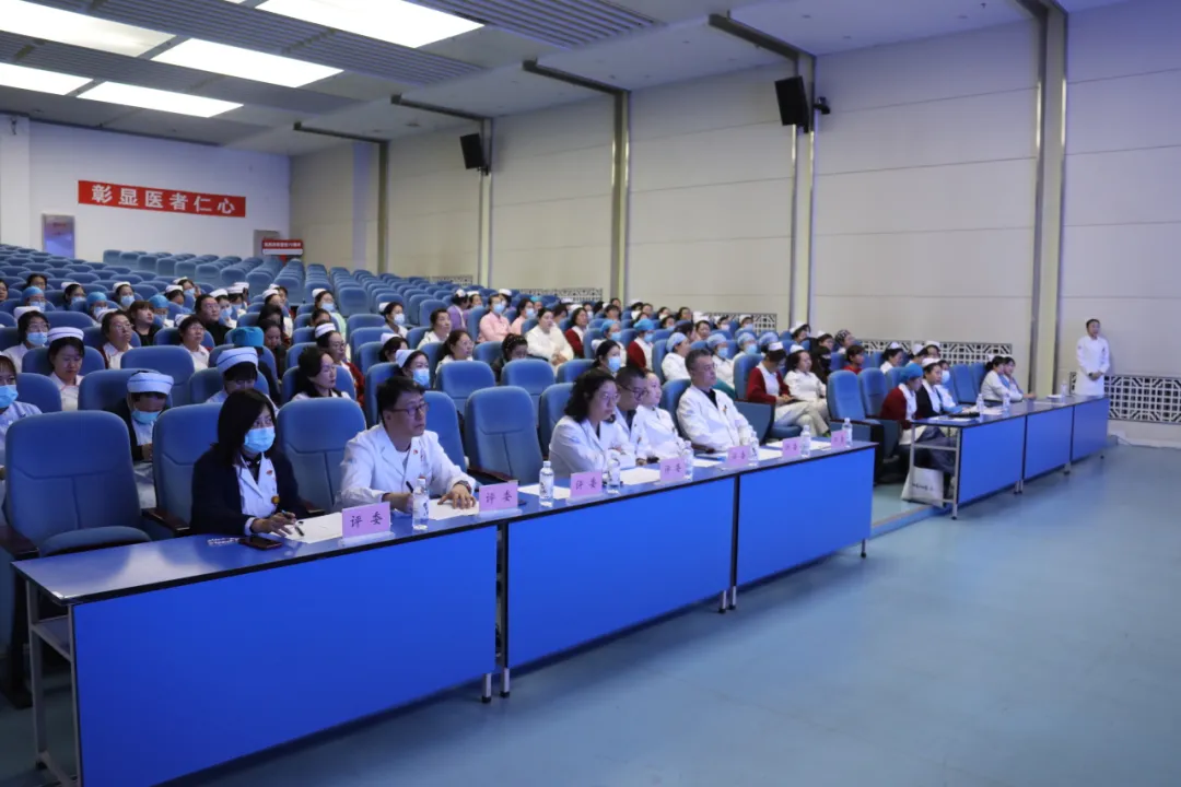 医疗副院长刘增良、工会主席陈珊珊、病案室主任张学斌、门诊部主任谭丽娜、宣传科科长陈鹏、科研科科长吴迪、院办副主任梁辰担任评委。现场共计100余名护理人员全程观摩了本次比赛。