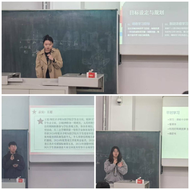 三位同学分别从不同的角度介绍了个人的学习心得,王超同学聚焦专业知识建构,建议同学们以课程大纲为纲搭建知识网络,通过周期性复盘串联碎片化内容;何舒涵同学围绕时间管理,向大家演示了依据课表量化任务,制定可视化日程表并按难度梯度分配学习时长的方式方法;戢思琪同学则分享了笔记管理与记忆技巧,详细向同学们讲解了自己在运用康奈尔笔记法和记忆宫殿原理过程中的心得体会。在互动交流环节,三位同学以具体案例详细解答了现场同学提出的问题。